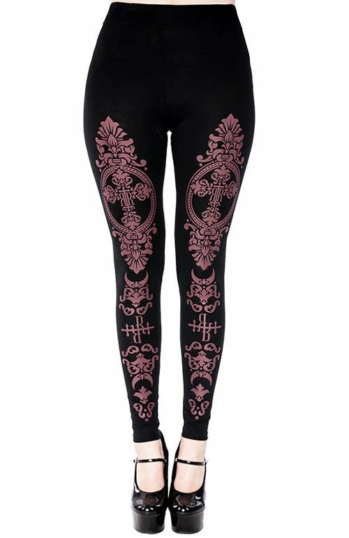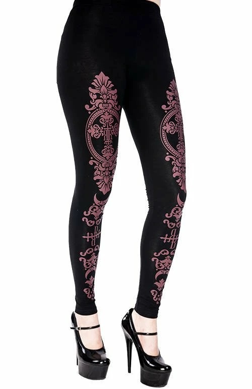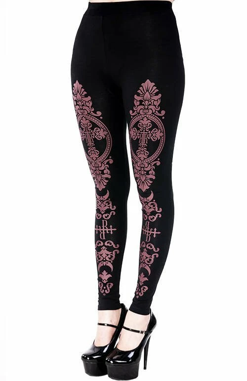 * Black gothic leggings with a burgundy monogram