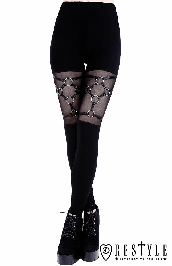 * On the thighs there is a strong mesh part with o-rings and faux leather straps pattern