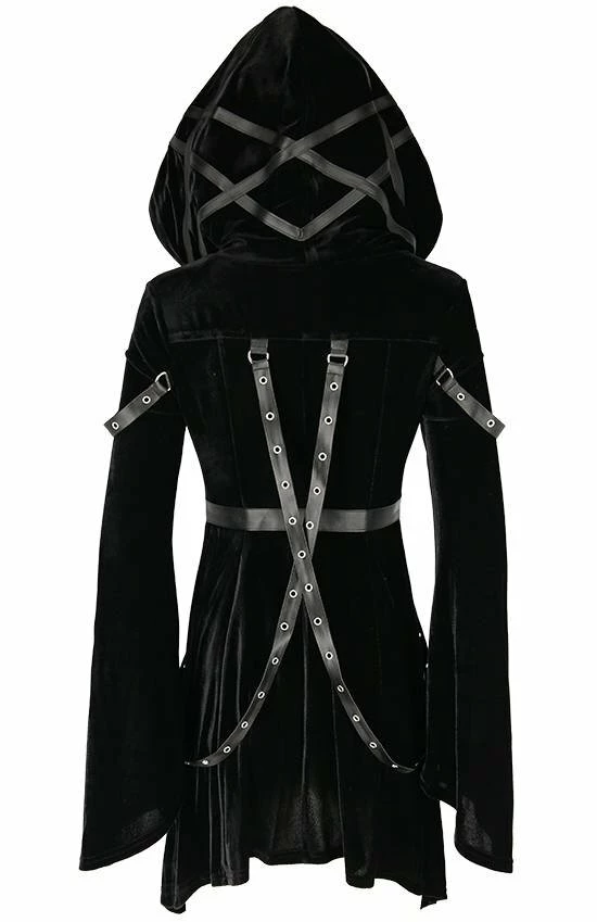 * The gigantic hood is decorated with eco-leather stripes that form a pentagram pattern
