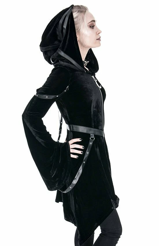 * Thanks to a faux leather belt, the gothic sweatshirt will emphasize your waist