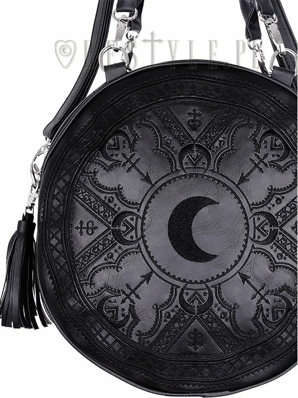 On the front, there is huge, detailed embroidery of our unique henna design with alchemical symbols and a crescent moon.