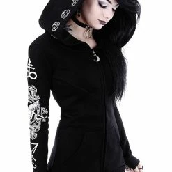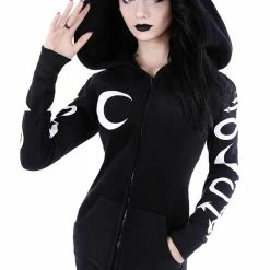Restyle Jackets Black Oversized Hood Gothic Crescent Occult Zip-Up Jacket