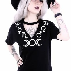 Restyle T-Shirts V-neck With Choker Gothic Blouse With Moon Symbol